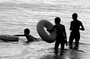 孩子们傍晚海边戏水。九月的三亚,阳光充足,海水清澈。傍晚时分,人们在海边戏水,观赏美丽的落日,尽情地享有黄昏的每一刻快乐。 特约记者 孙清 摄
