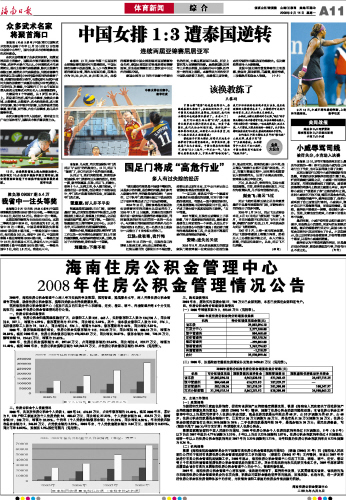 海南日报 体育新闻 011 2009-09-141 2009年09月14日 星期一