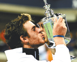 | 德尔波特罗亲吻美网冠军奖杯。 新华社发 |