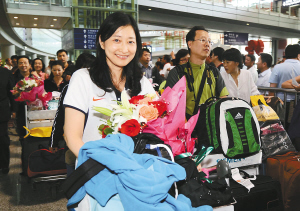 | 9月15日,在第17届威尼斯杯世界桥牌女子团体赛上首次夺得世界冠军的中国女子桥牌队载誉回国。 新华社发 |