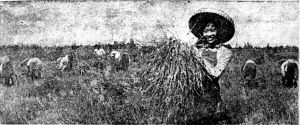 | 儋县新州公社中和大队在“大跃进”中提出:“确保每亩产800斤,力争1000斤”。图为该队社员正在进行收割。 王学海 摄 |