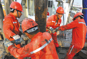 | 铁人王进喜所在的铁人1205钻井队队员正在作业。 新华社发 |