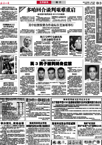 海南日报 世界新闻 011 2009-09-161 2009年09月16日 星期三