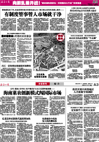 海南日报 向脏乱差开战! 003 2009-09-161 2009年09月16日 星期三