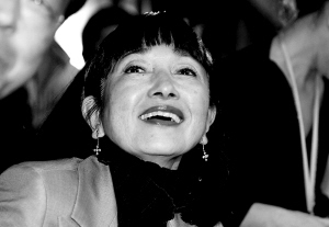 鸠山由纪夫的夫人鸠山幸在首相指名选举现场看到丈夫当选首相后笑容满面。 新华社记者任正来摄