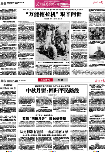 1958年4月17日,《新海南报》头版头条消息称:海南拖拉机总站在大跃进声中,试制成功了两部万能拖拉机。4月14日,经过试验,这两部拖拉机都能下水田。