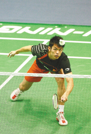 | 9月16日,2009中国羽毛球大师赛在江苏省常州市开赛,图为中国选手林丹在男单第一轮比赛中,以2:0战胜队友邱彦博。 新华社发 |