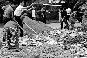 | ← 9月16日,城西镇出动机关干部清理路边建筑垃圾。 本报记者 古月 摄 |