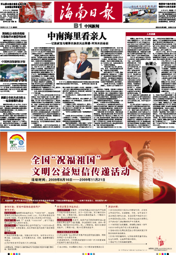 海南日报 中国新闻 009 2009-09-171 2009年09月17日 星期四