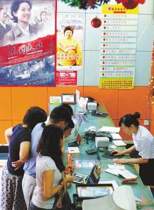 | 9月17日下午,影迷在海口银龙电影城购买《建国大业》电影票。