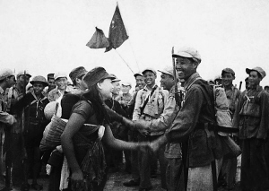 | 一九五○年四月,解放海南岛的第四野战军与琼崖纵队胜利会师。 (资料照片) |