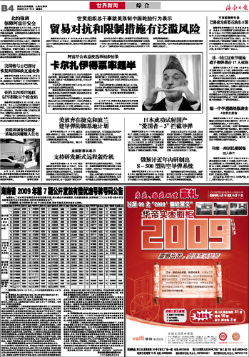 海南日报 世界新闻 012 2009-09-181 2009年09月18日 星期五