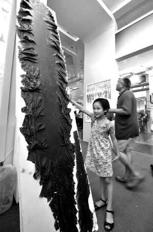 9月19日,展会上展出的一条长5.3米、重5公斤的海带,吸引了观众的目光。 当日,为期3天的第四届中国渔业博览会在福州开幕,来自台湾、广东、海南、浙江等地的200多家客商参展,展览展出了水产加工、渔业设备、饲料、渔药及休闲渔业等产品。 新华社记者 姜克红 摄