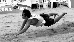 | 十一运会沙滩排球比赛在青岛市激战正酣。 小新发 |