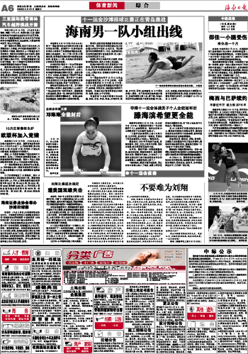 海南日报 体育新闻 006 2009-09-201 2009年09月20日 星期日