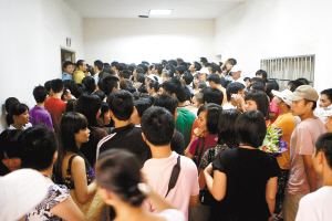 | 明珠广场电梯口挤满了歌迷