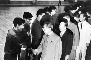 “我们在休息室排好队等着总理,当周总理走进休息室时,响起了热烈的掌声。周总理和我们一一握手。他对我们说,你们要好好向奥运会冠军日本队学习。总理走到我身前和我握手,并且问我是哪里人,我回答说是广东人。”每当吴坤兴回想起这一幕,就感到很激动。