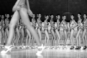 9月20日晚,第十七届新丝路模特大赛总决赛泳装环节比赛现场。 本报记者 张杰 摄
