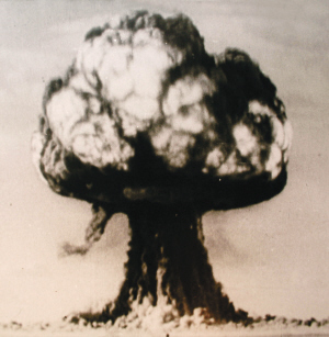 | 1966年10月27日,中国第一次导弹原子弹结合试验成功。图为导弹、原子弹结合实验爆炸形成的蘑菇云。 |