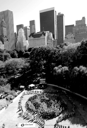 9月20日,在美国纽约中央公园,志愿者聚集在一起,用身体组成地球被困在一个沙漏里的形状。在联合国气候变化峰会即将举行前,组织者希望用这种活动唤起人们对全球气候变化的关注。 新华社/法新 关注 环境