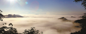 | 云层覆盖的白沙县城宛若仙境。白沙是山的世界、水的源头,也是云的故乡、林的海洋。原生态保护已成为该县的治县之本。