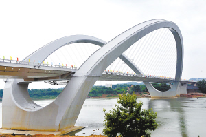 9月21日,世界首座大跨径曲线梁非对称外倾拱桥———南宁大桥正式建成通车。南宁大桥横跨邕江两岸,主桥300.50米,引桥长434.00米,引道长580.27米,桥宽、路基宽度35米。桥型由已故美籍华人、著名桥梁设计大师林同炎创意设计,形状如同蝴蝶展翅。 新华社发