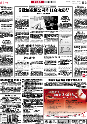 海南日报 财经新闻 011 2009-09-221 2009年09月22日 星期二