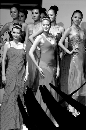 | 二〇〇八年十二月五日,模特们在展示珍珠饰品。当日,“中国珍珠二〇〇九年度新品发布会和发展国际论坛”在三亚举行,演绎了二〇〇九年度中国珍珠饰品的流行时尚趋势。 资料照片 |