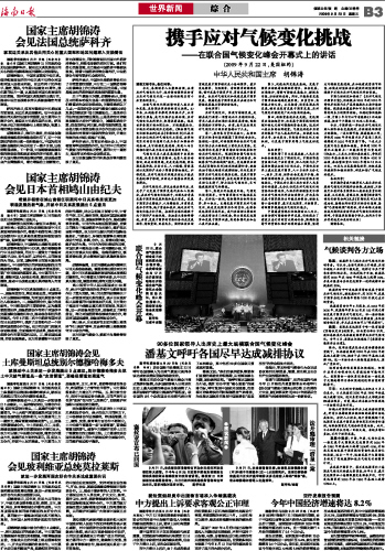 海南日报 世界新闻 012 2009-09-231 2009年09月23日 星期三