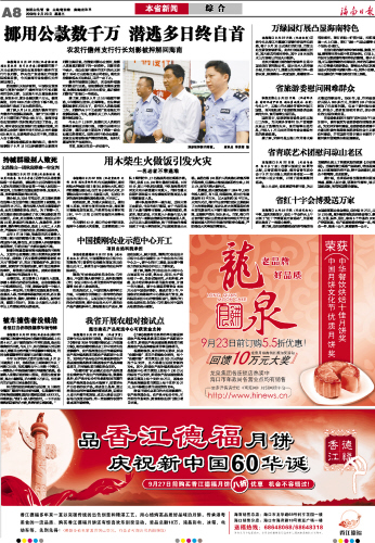 海南日报 本省新闻 008 2009-09-231 2009年09月23日 星期三