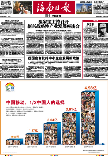 海南日报 中国新闻 009 2009-09-231 2009年09月23日 星期三