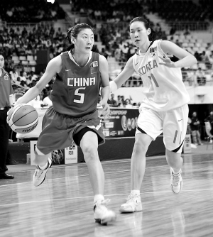| →24日,获得最有价值球员奖的卞兰(左),在和韩国女篮的决赛中带球突破。 新华社发 |