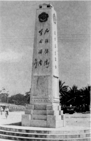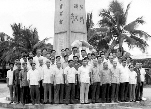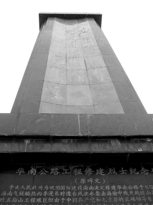 | ← 1954年,海榆中线全线建成通车不久,党和政府在起点处海口市秀英区为221名筑路烈士修建的纪念碑。