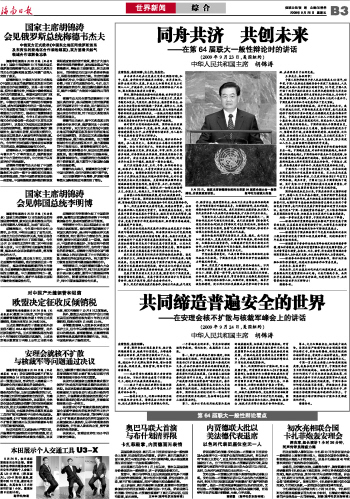 海南日报 世界新闻 011 2009-09-251 2009年09月25日 星期五