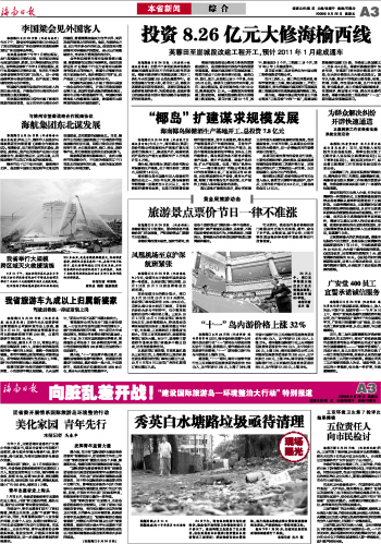 海南日报 综 合 003 2009-09-251 2009年09月25日 星期五