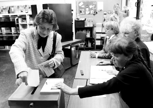 9月27日,选民在德国首都柏林一所投票站投票。德国联邦议院选举于当地时间27日上午8时正式拉开帷幕。德国全国共有28个党派、3556名候选人登记参加此次大选,角逐第17届联邦议院598个议员席位。 新华社记者 武巍 摄