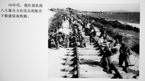 | 1950年代,我区部队投入大量兵力在民兵的配合下修建琼南铁路。