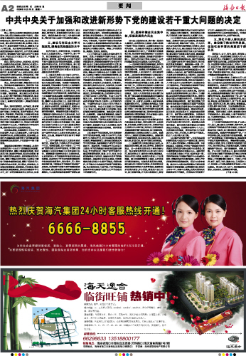 | 海南日报 要 闻 002 2009-09-281 2009年09月28日 星期一 |