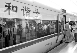 | 9月28日,“和谐号”动车组在福州火车站等待发车。 新华社记者 姜克红 摄 |