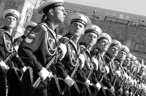 为了纪念1941年到1945年卫国战争的胜利,过去的苏联和现今的俄罗斯每年5月9日都要在莫斯科红场举行盛大的阅兵式。和西方国家相比,红场阅兵无论在规模还是在质量上都要高出一筹。数目庞大的三军士兵按照精心设计的严整方阵,迈着整齐威武的正步从广场走过,每人都高昂着头颅,动作非常标准。参加阅兵的还有数目庞大的坦克、装甲车、飞机和大量最尖端的导弹。当密密麻麻的士兵喊出震耳欲聋的口号,当铁甲洪流从广场缓缓驶过,当最先进的战机以遮天蔽日之势从上空呼啸而过时,那种磅礴的威严阵势简直让人透不过气来。