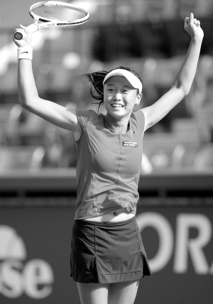 9月28日,中华台北小将张凯贞在泛太平洋网球公开赛中击败萨芬娜。图为张凯贞庆祝胜利。 新华社发