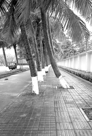 在琼山区朱云路记者看到,虽然这条道路还在修建中,但是通车的部分路面被扫得干干净净,就连路边开出的临时通道上,也看不到垃圾乱丢现象。上午12时,一名清洁工正在冒雨清扫朱云路人行道上被风吹落的树叶。