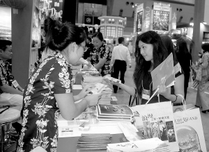 | 在近日举办的东京旅游博览会上,日本民众对三亚旅游产品表现出浓厚兴趣。