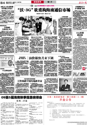 海南日报 财经新闻 016 2009-09-291 2009年09月29日 星期二