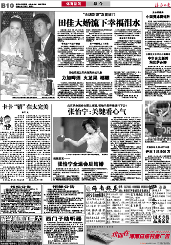 海南日报 体育新闻 022 2009-09-291 2009年09月29日 星期二
