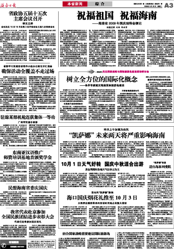 海南日报 综 合 003 2009-09-291 2009年09月29日 星期二