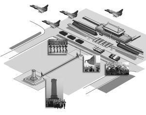飞越天安门广场上空后,直升机梯队在复兴门上空解散,其余各梯队在公主坟上空解散,返回各机场。 (综合新华社消息)