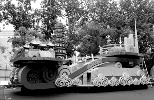 彩车巡游是国庆庆典的“重头戏”之一。目前,在重重警卫的严密守护下,60辆国庆彩车已全部集结于北京工人体育场,只待国庆当天闪亮出场。 随着国庆的临近,此前一直处于严格保密状态下的大部分花车已掀开遮挡布初露芳容。在海南彩车团队的大力帮助下,本报特派记者有幸进入彩车村一睹各车之风采。 据了解,参加此次国庆游行的彩车有60辆,此外,还有4辆领袖画像彩车和1辆用于行进式文艺表演的道具车。 国庆当天,按照体制和庆典惯例,国徽彩车将打头阵。此后,彩车将按照“奋斗史”、“创业史”、“改革开放史”的主题进行排序,依次受阅。据介绍,60辆彩车中,19辆展现全国各行各业、各条战线综合成就;34辆展现各省区市以及香港、澳门两个特别行政区和台湾地区的代表性元素;3辆彩车出现在群众游行的“艰苦创业”、“众志成城”和“北京奥运”方阵,分别展现大庆精神、“两弹一星”精神、奥运精神等宝贵精神财富;还有4辆彩车将展示中华民族的团结奋进和美好未来等。 为防万一,所有彩车上都有推车人员,可在彩车出现故障等情况下推车前进而不影响游行正常进行。为了控制成本,每辆彩车都制定了回收利用的方案。 60辆国庆彩车中将有58辆从10月2日至10月7日在天安门广场展示,此后部分彩车将拉回本地展示,部分彩车将调整一些元素后在上海世博会上再次亮相。 (本报北京9月29日电) |