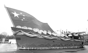 | ←江苏彩车取名“吉祥如意”,彩车通体主色是中国红和耀眼的黄色,十分喜庆。扬州瘦西湖五亭桥的模型被放在彩车顶部最显眼的位置。 |
