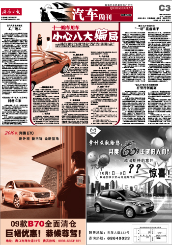 | 海南日报 汽车 019 2009-09-301 2009年09月30日 星期三 |